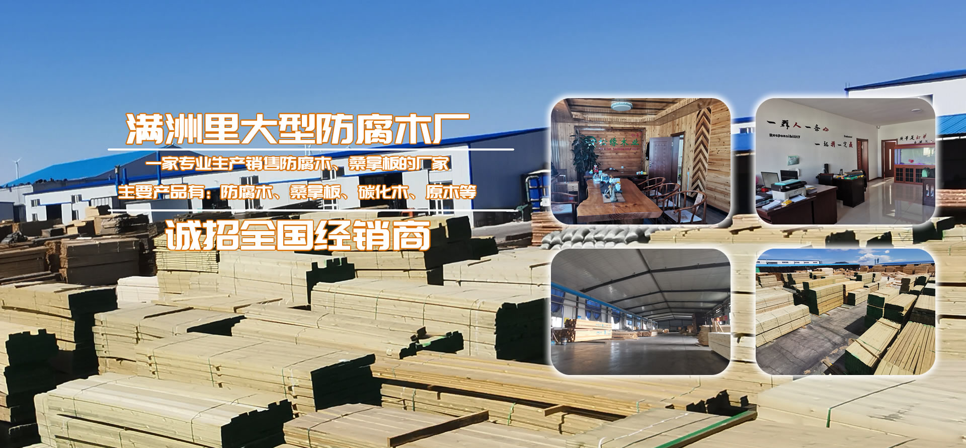滿洲里松緣木業(yè)有限公司是一家專業(yè)從事戶外防腐木深加工企業(yè)。工廠總占地面積2.4萬平方米,其中廠房占地面積4000平,水泥硬化地面積2萬平方米,防腐木年生產(chǎn)量80000立方米,桑拿板年生產(chǎn)量310000平方米。公司長年貯備充足、刨光材、板材成品防腐木以及各種進(jìn)口防腐木材。從俄羅斯選材調(diào)運,保證有充足的優(yōu)質(zhì)木材。精選生產(chǎn)加工的樟子松嚴(yán)格按照美國AWPA防腐等級標(biāo)準(zhǔn),經(jīng)過真空加壓浸等15道專業(yè)的木材防腐生產(chǎn)工藝流程制造,使木材具有防腐、防蟲、防霉等功效,已廣泛用于古建筑、木亭、別墅、住宅區(qū)、公園廣場等公共場所。壽命持久50以上。產(chǎn)品售前售后的服務(wù),力求出廠的每件產(chǎn)品都是精品、藝術(shù)品,并在全國設(shè)立三十多個市級經(jīng)銷商。